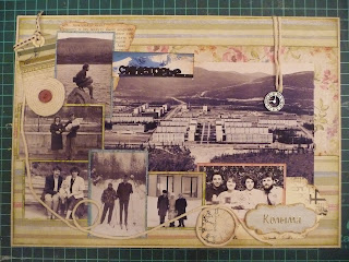 Ну во-первых не могла не поместить эту старую фотку, она не то 46, не то 47 года. Старики в центре, это мои прабабушка и прадедушка. Надо же хоть какую-то память сохранять. Может потомки заинтересуются :-) Во вкладыше перечислены все по именам. По технологии все как обычно, только на второй страничке рамка из газетных обрывков, даже не знаю есть ли название такой технике.